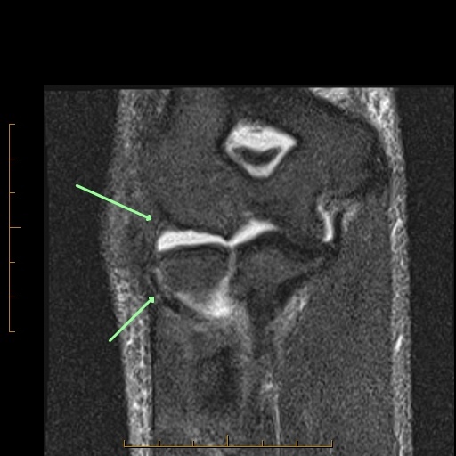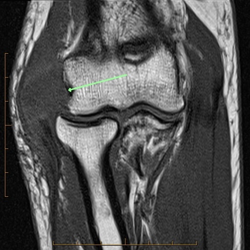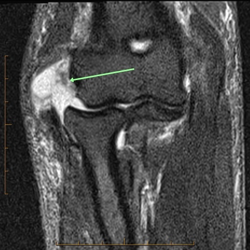 - Proper radial collateral ligament (torn-arrow, images two and three).